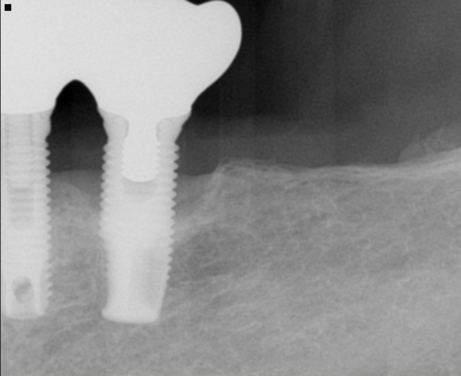 初期固定とは、埋入直後にどれだけしっかりと骨に締結されているかを示す指標です。残存骨が1〜2mmでは、この初期固定が得られません。そのため、まず骨造成を行い、約6か月の治癒期間を経てからインプラントを埋入する計画になります。