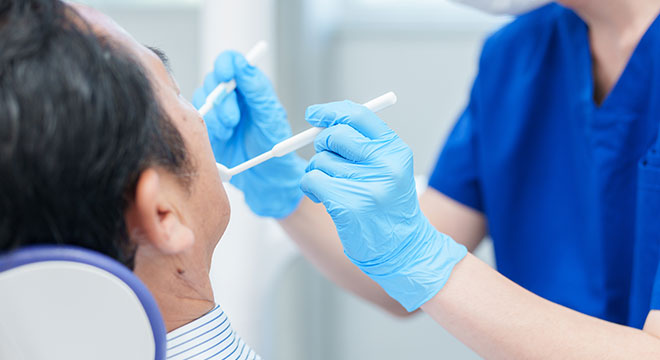 口腔内全体の精密な検査、診断を行い、顎や粘膜の状態を確認致します。現在ご使用中の入れ歯がある場合は、適合状態を確認させて頂くこともございます。